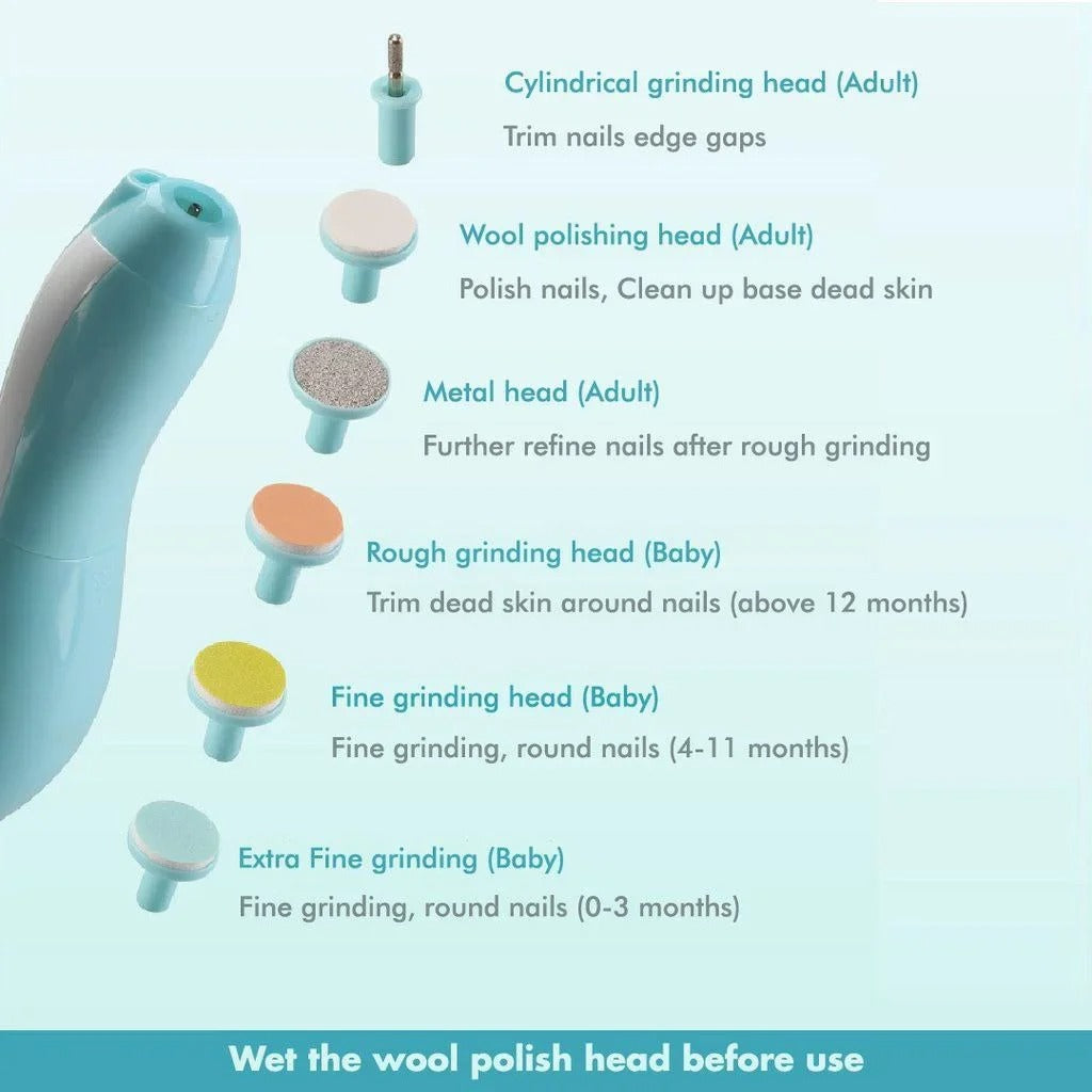 Deze Elektrische Baby Nagelvijl maakt nagels verzorgen eenvoudig, veilig en volledig zonder tranen. Dankzij de zachte, roterende vijlkoppen vijl je de nagels van baby's en peuters snel bij zonder scherpe randjes of risico op verwondingen.